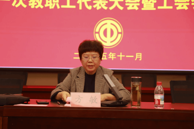 11 月 13 日上午,在雄壮的国歌声中,我校第三届第一次教职工代表大会暨工会会员代表大会在弘文守正楼学术报告厅召开。校领导张效松、王滨、崔立功、方敏、杨凯、董志良、鲁增秋以及来自学校不同岗位的正式代表、列席代表150人参加了会议。大会由学校党委副书记方敏主持。