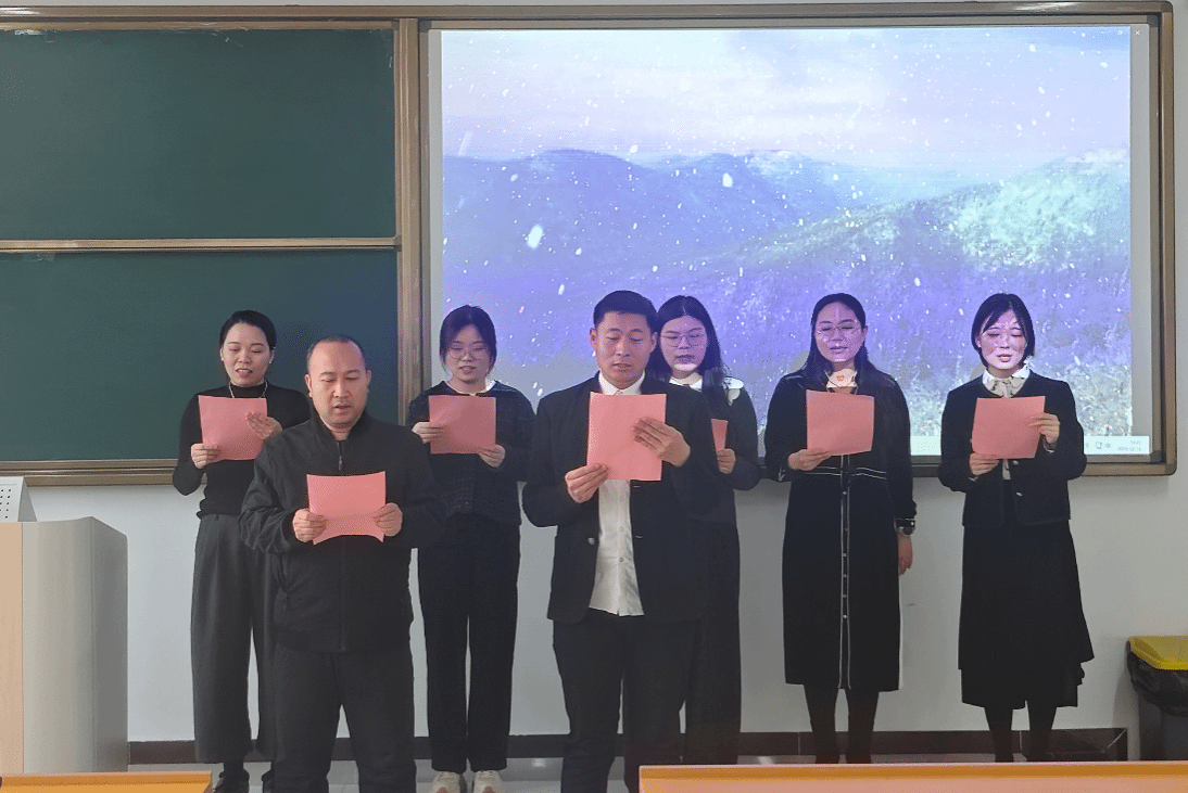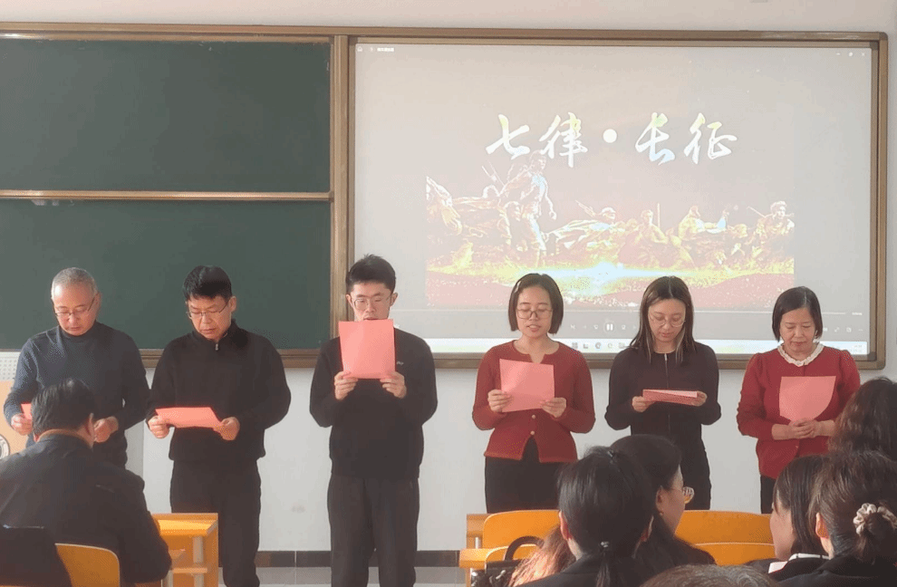 本次朗诵会共有六组队伍依次登台,集中呈现了《沁园春・长沙》《沁园春・雪》《菩萨蛮・黄鹤楼》《七律・长征》等经典诗作。老师们以饱满的热情、真挚的情感和铿锵的语调,将诗词中蕴含的革命热血、理想信念与豪迈气魄展现得淋漓尽致。从青年志士的家国追问到北国风光的壮阔抒怀,从革命征途的坚毅前行到新时代的使命担当,每一段朗诵都感染力十足,让现场观众在重温经典中感受到了穿越时空的精神伟力。