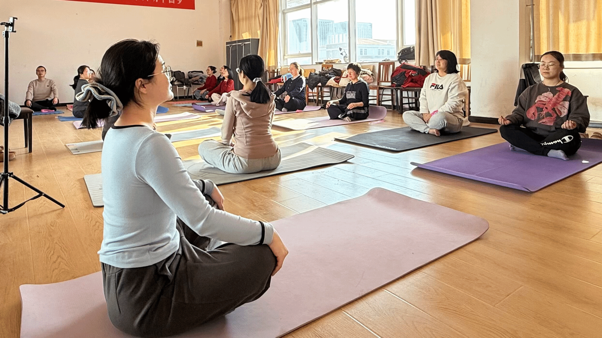 练习过程中,老师们全神贯注、认真投入,在一呼一吸间舒展身体,在一伸一屈中释放疲惫。静谧舒适的练习氛围,耐心专业的指导讲解,让大家暂时卸下工作的忙碌与疲惫,沉浸式享受身心放松的美好时刻,有效缓解了长期久坐带来的身体紧绷感,也让心理压力得到充分舒缓。